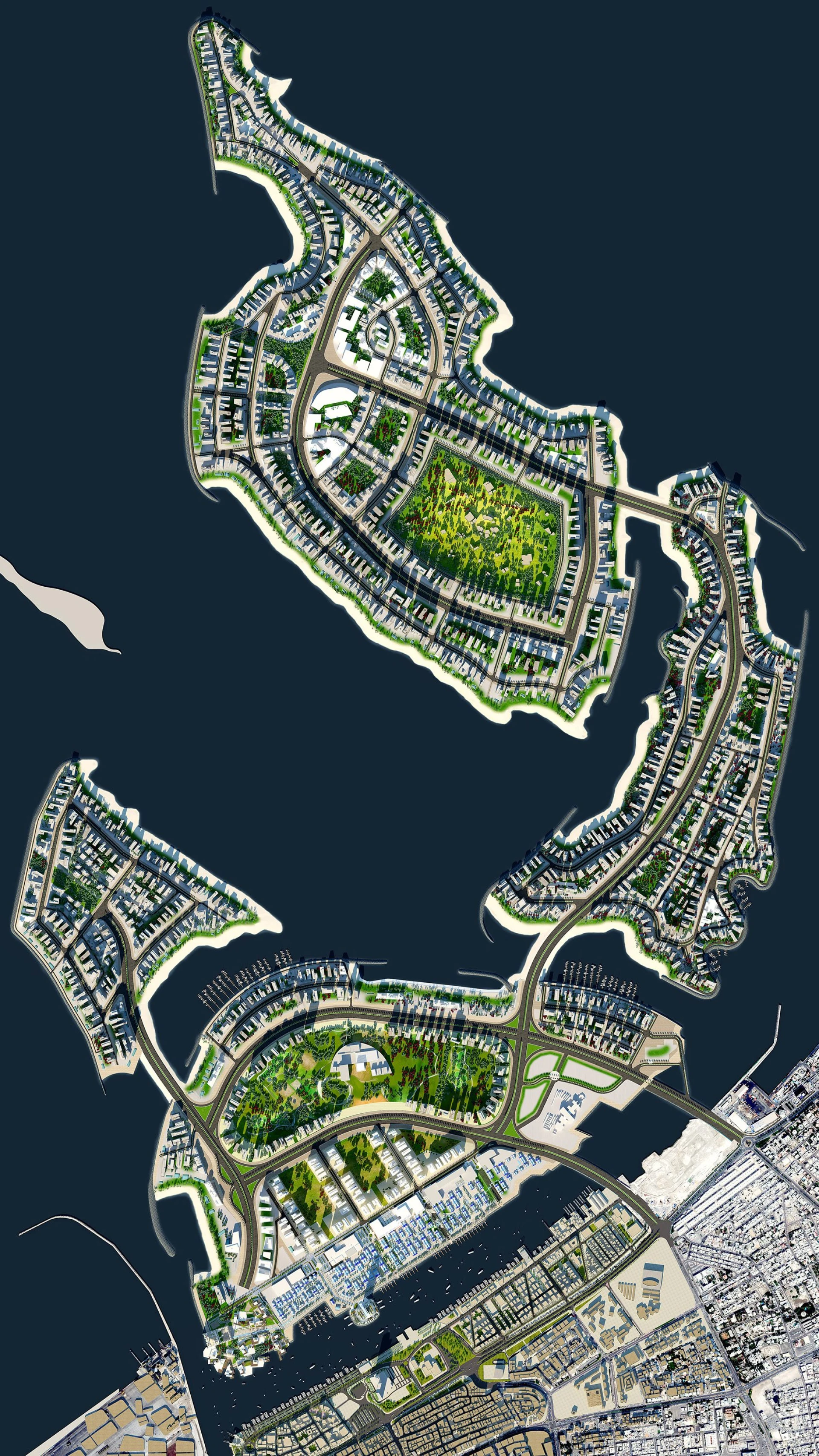 Na siedmich ostrovoch prepojených mostmi vznikne pobrežné mesto, ktoré by malo mať 250 000 obyvateľov a vytvoriť 80 000 pracovných miest.