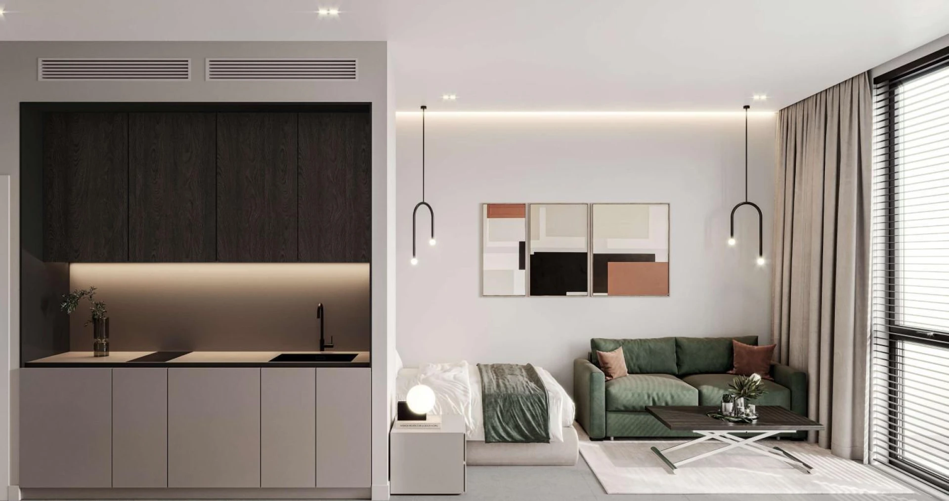 Každý byt v 1WOOD je plne zariadený, ponúkajúci útulný, moderný domov, ktorý oslavuje krásu prírody, zatiaľ čo zrelé stromy objímajú budovu a infúzujú celú rezidenciu bujnou, zelenou atmosférou. Dobre premyslené dispozície zabezpečujú maximálny komfort a funkčnosť, vychádzajúc v ústrety vašim potrebám.
