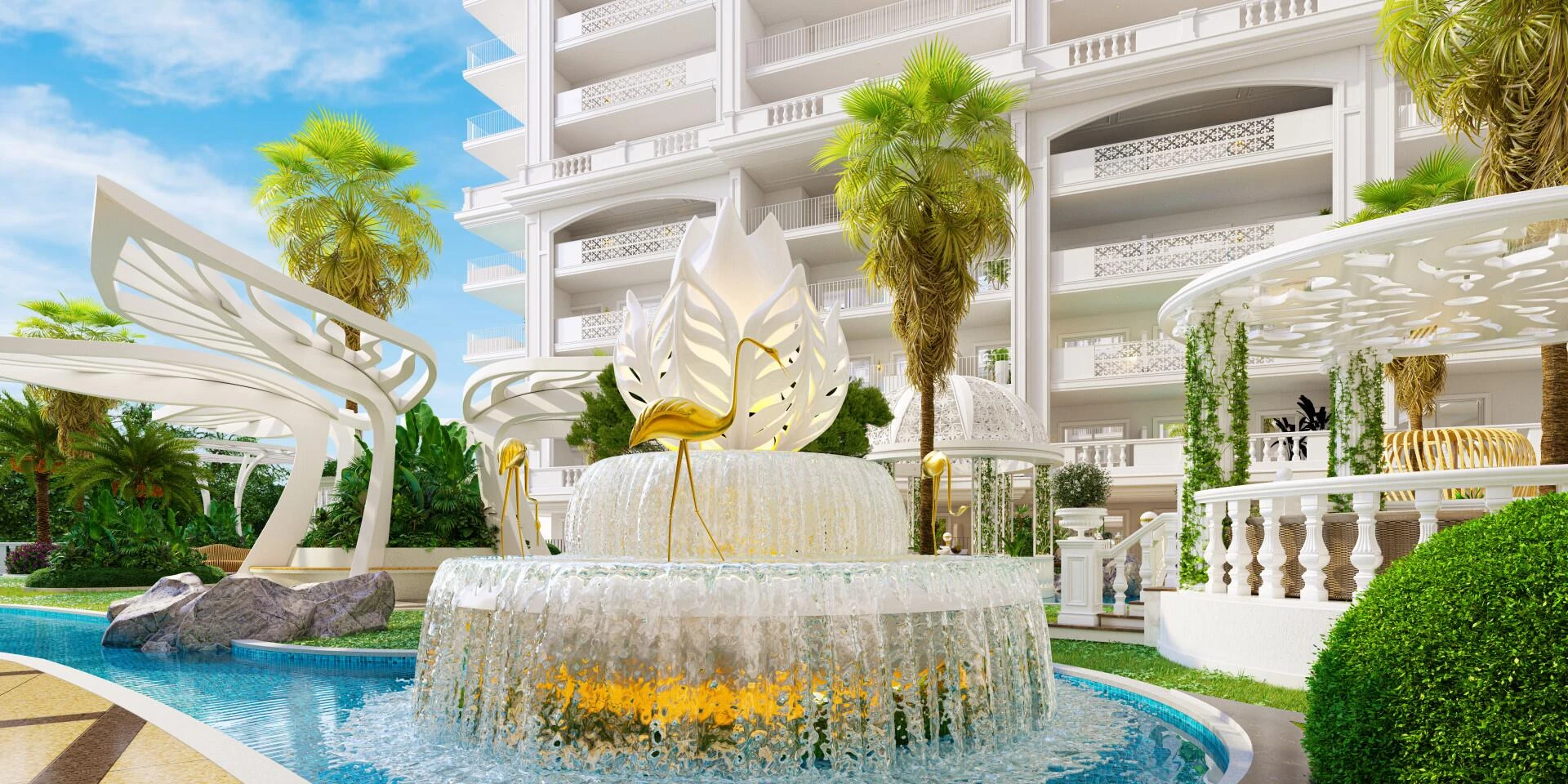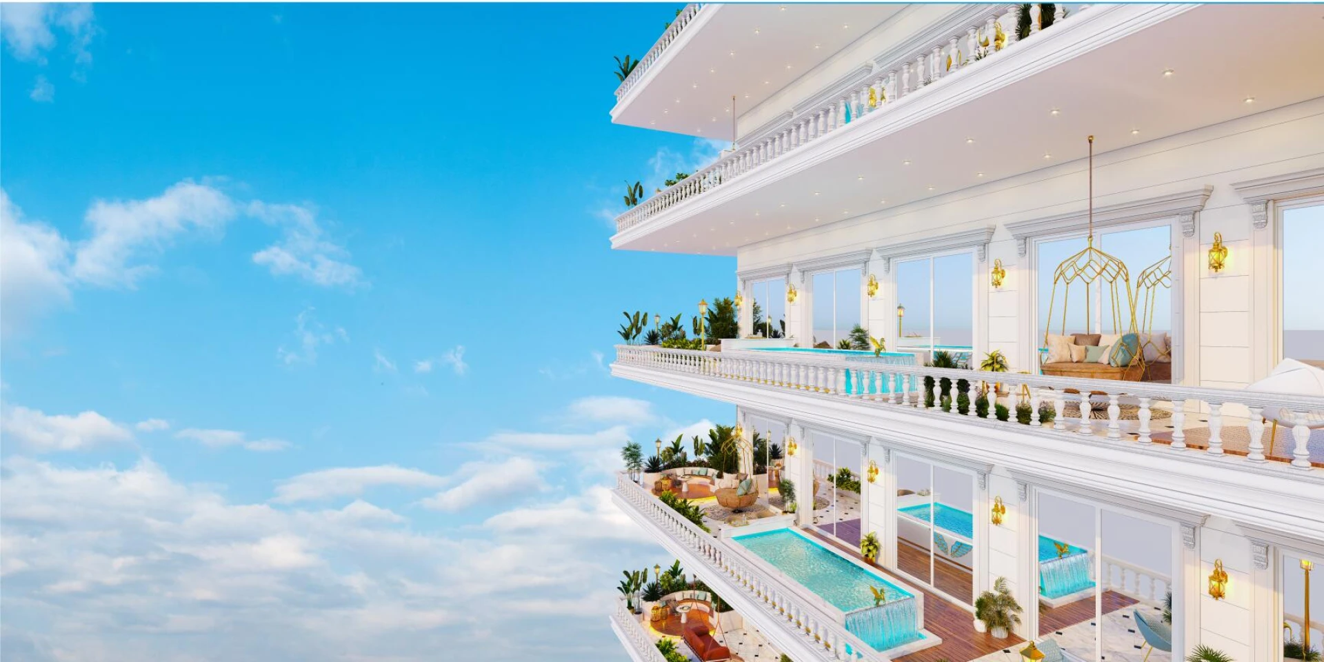 Každý dom je starostlivo navrhnutý tak, aby evokoval klasickú okázalosť, zvýraznenú súkromnými bazénmi v nebeských vilách a vynikajúcim talianskym remeslom po celom objekte. Veľkolepá 40-metrová lobby, 5-hviezdičková prístupová cesta a elegantné odstavné plochy nastavujú sofistikovaný tón od prvého okamihu, keď dorazíte.