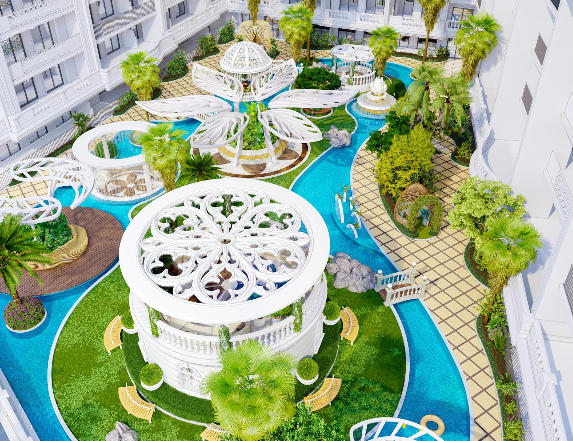 Vstúpte do priestorov naplnených európskym šarmom – vítajúca fontána s sochou jednorožca, viktoriánske motívy a zložitými detailmi na stropoch vytvárajú pocit nadčasového luxusu. Každodenný život je bezproblémovo obohatený pohodlnými maloobchodnými predajňami, útulnou kaviarňou, dobre zásobeným obchodom s potravinami a exkluzívnym obchodným salónikom pre produktivitu a networking.
