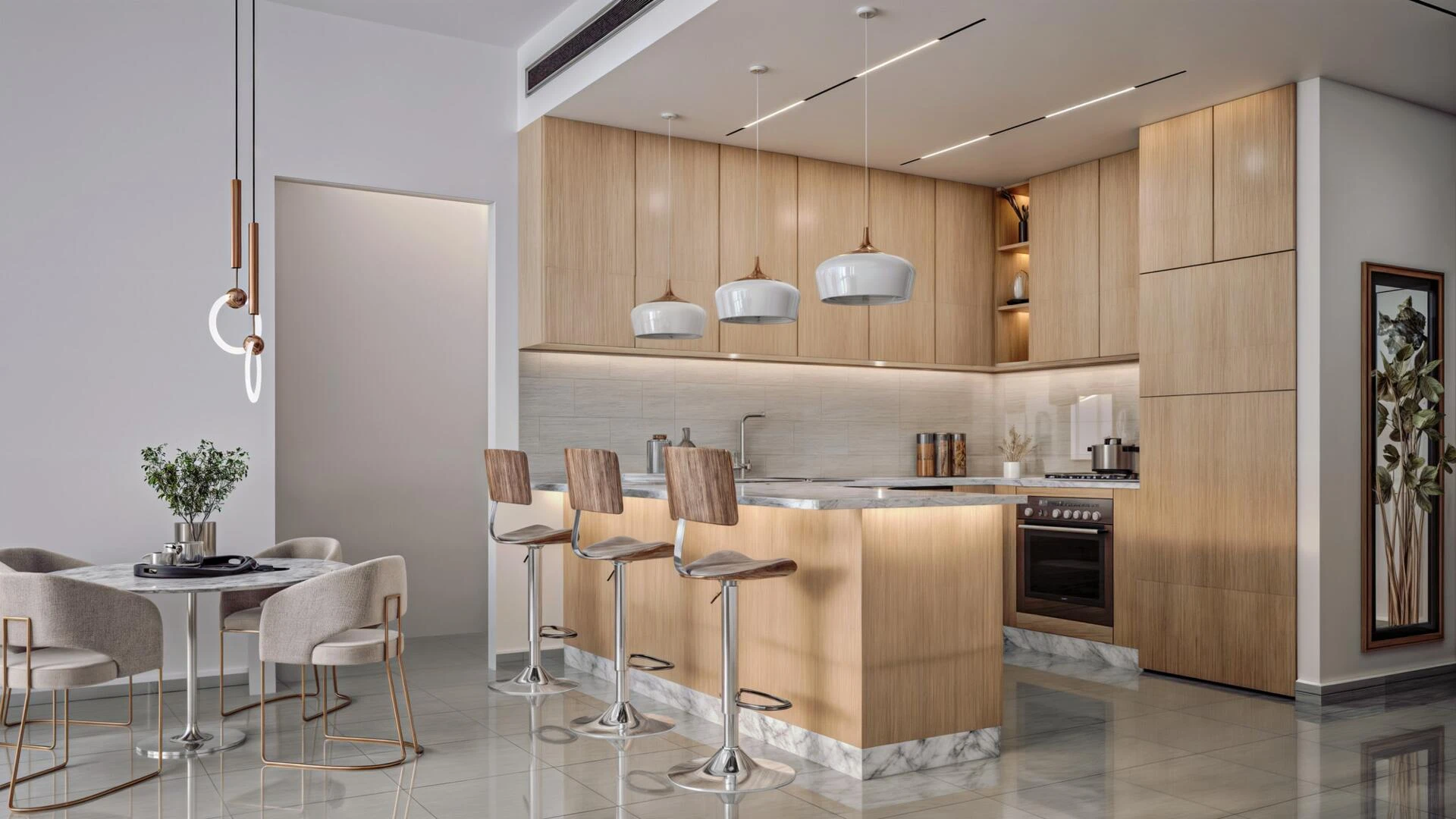 Vo vnútri sa Butterfly Towers dokonale spája elegancia a funkčnosť. S rôznymi dispozíciami od štúdií po trojizbové byty je každý byt dokončený podľa najvyšších štandardov. Prírodné svetlo preniká cez okná od podlahy po strop, osvetľujúc moderné kuchyne, priestranné obývacie izby a vkusne navrhnuté interiéry, ktoré vytvárajú príjemnú atmosféru.