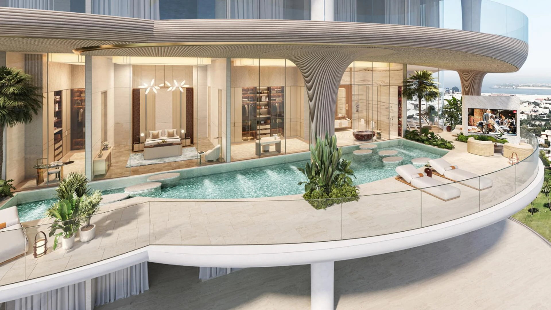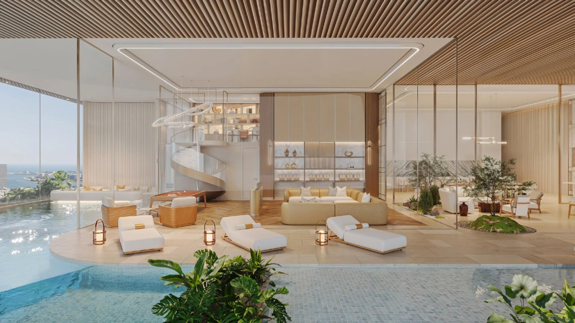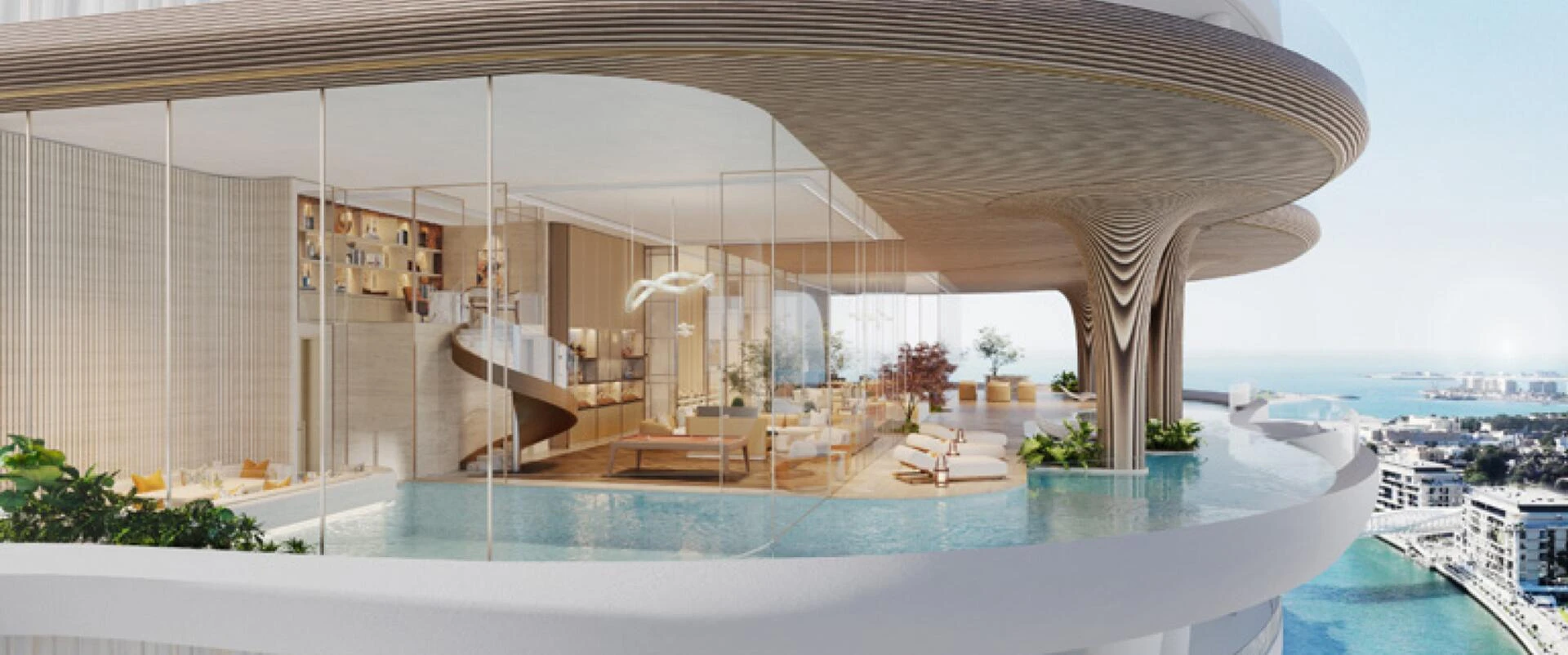 Každý dom je starostlivo navrhnutý pre súčasný luxus, ponúkajúci priestranné pôdorysy začínajúce od viac ako 5 000 štvorcových stôp až po ohromujúcich 29 700 štvorcových stôp. Rezidencie sú prístupné cez súkromné výťahy vedúce priamo do vzdušných, dvojvýškových obytných priestorov s vysokými stropmi až do 12 metrov. Veľké terasy predlžujú obytný zážitok vonku, zatiaľ čo interiéry – kurátorované HBA – ponúkajú bezproblémové prechody, ktoré prinášajú pokojnú atmosféru kanála a parku Safa do vášho každodenného života.