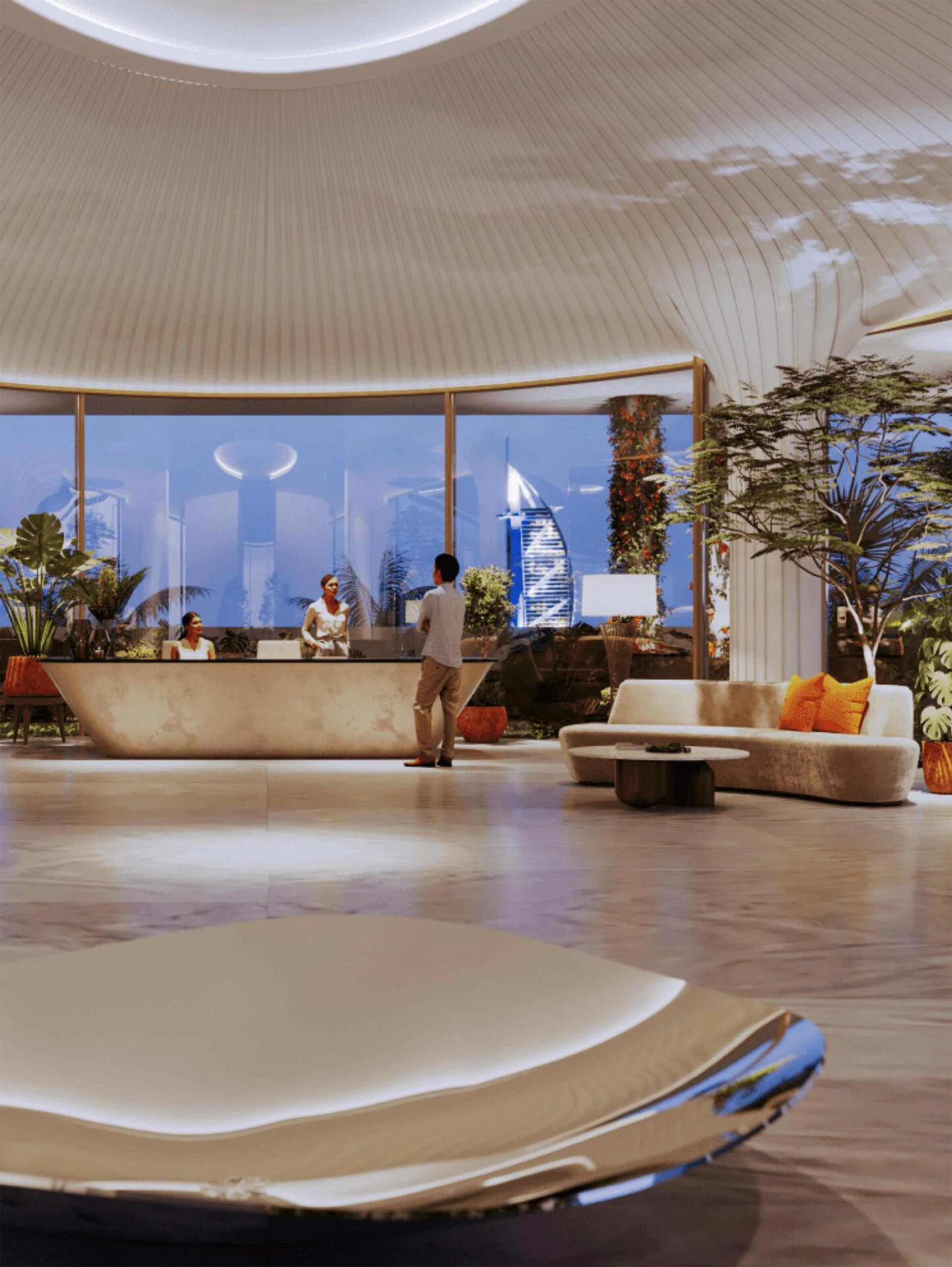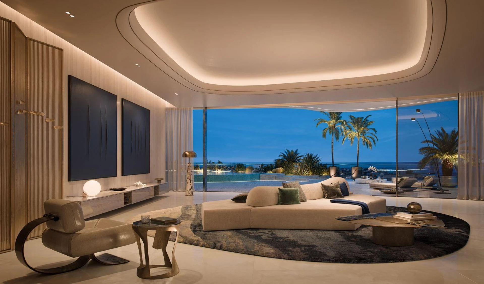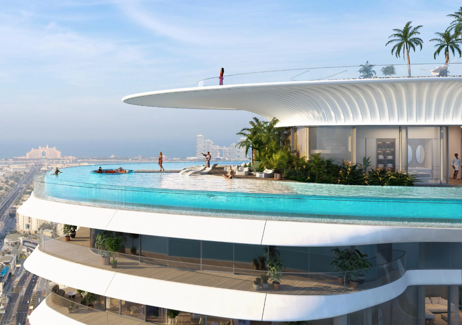 Vstúpte dnu a zažite novú úroveň sofistikovanosti. Každá rezidencia ponúka priestranné obytné priestory, doplnené o široké terasy zdobené súkromnými bazénmi a bujnou zeleňou, čím vytvára bezproblémovú kombináciu vnútorného a vonkajšieho bývania. Rozsiahle okná rámujú fascinujúce panorámy trblietajúceho sa pobrežia Dubaja a živého mestského prostredia.