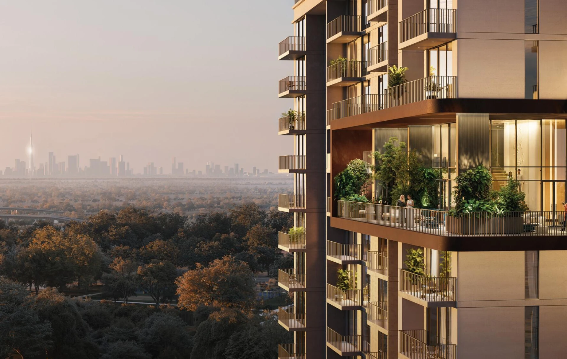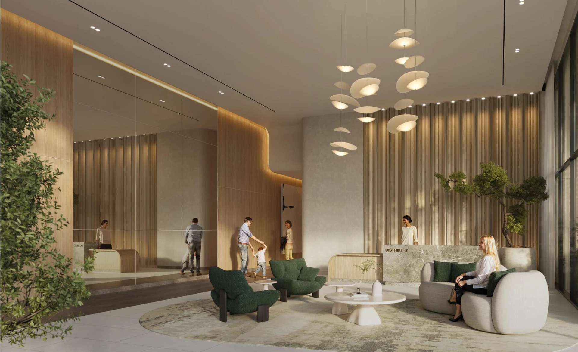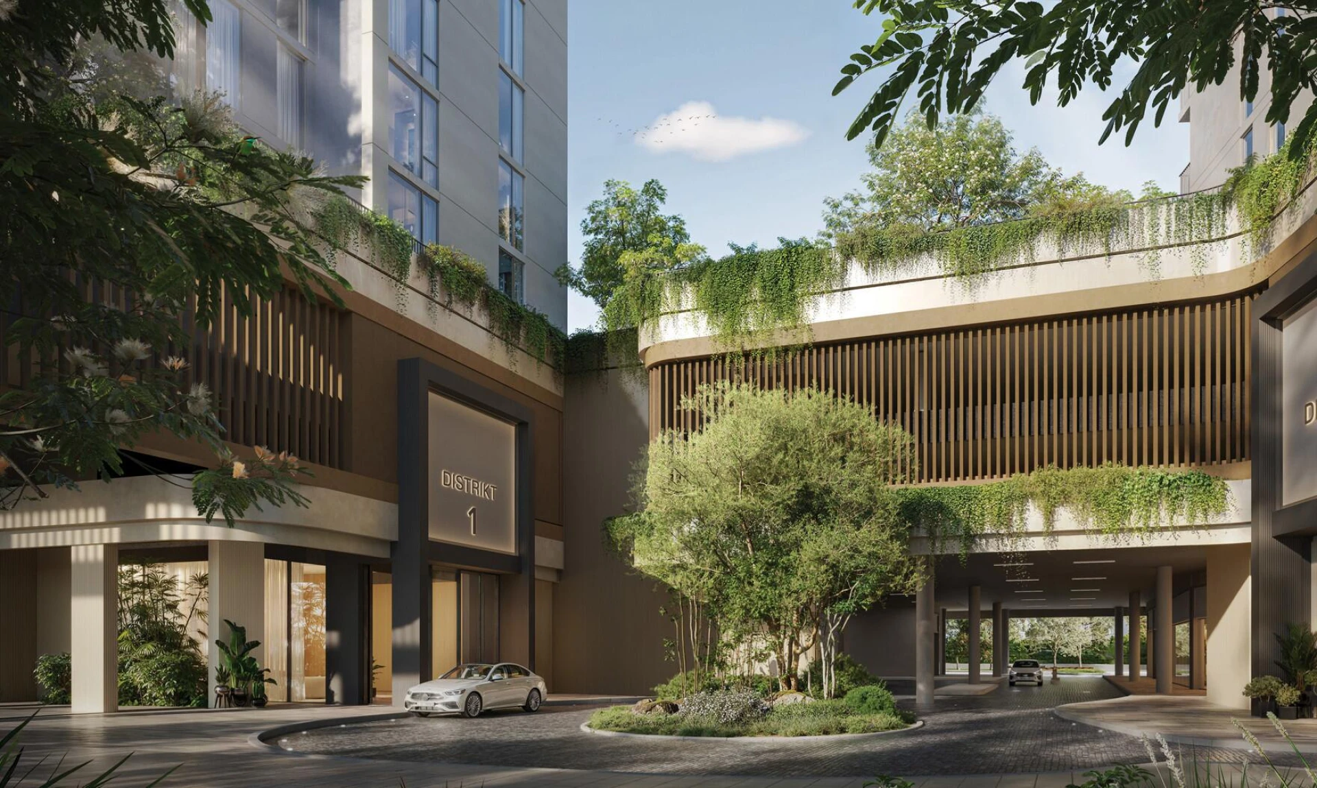 Discover Distrikt, an oasis of modern living where urban sophistication meets the tranquility of nature. Set within the lush Ghaf Woods forest community, Distrikt offers a unique blend of architectural elegance and natural harmony. Multiple towers rise gracefully among the trees, boasting a contemporary design with clean lines and warm facades that blend seamlessly into the landscape. Sky Gardens and Cloud Lounge spaces invite you to unwind above it all, while thoughtfully curated wellness and leisure zones provide places to recharge and connect.