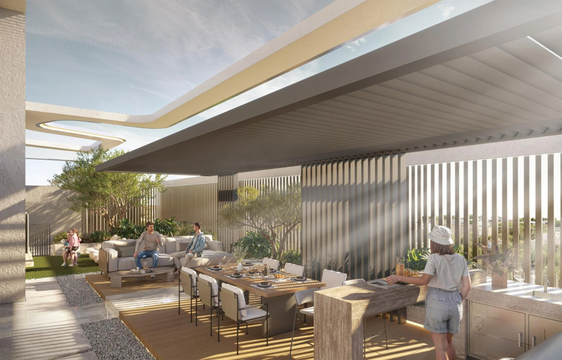Architektúra Golf Grove je poctou nenápadnej elegancii, s čistými líniami dokonale vyváženými organickými prvkami. Rozsiahle okná pozývajú prirodzené svetlo hlboko do každého domova, čím zvyšujú priestranné, vzdušné interiéry a rozmazávajú hranice medzi vnútorným a vonkajším životom. Každý detail a materiál sú starostlivo vybrané pre trvanlivosť, štýl a rafinovanosť, čím nastavujú nový štandard pre povýšený mestský život.