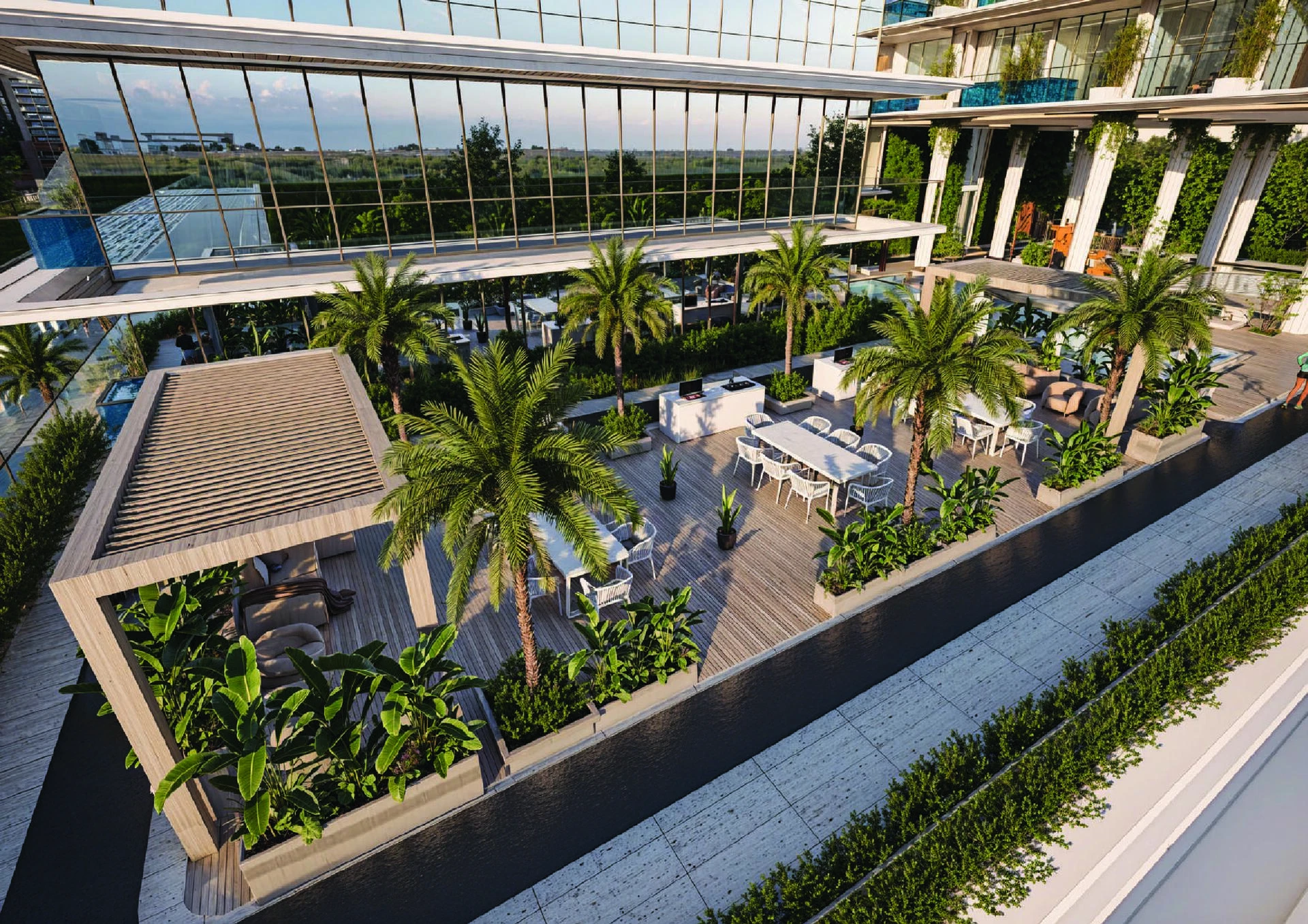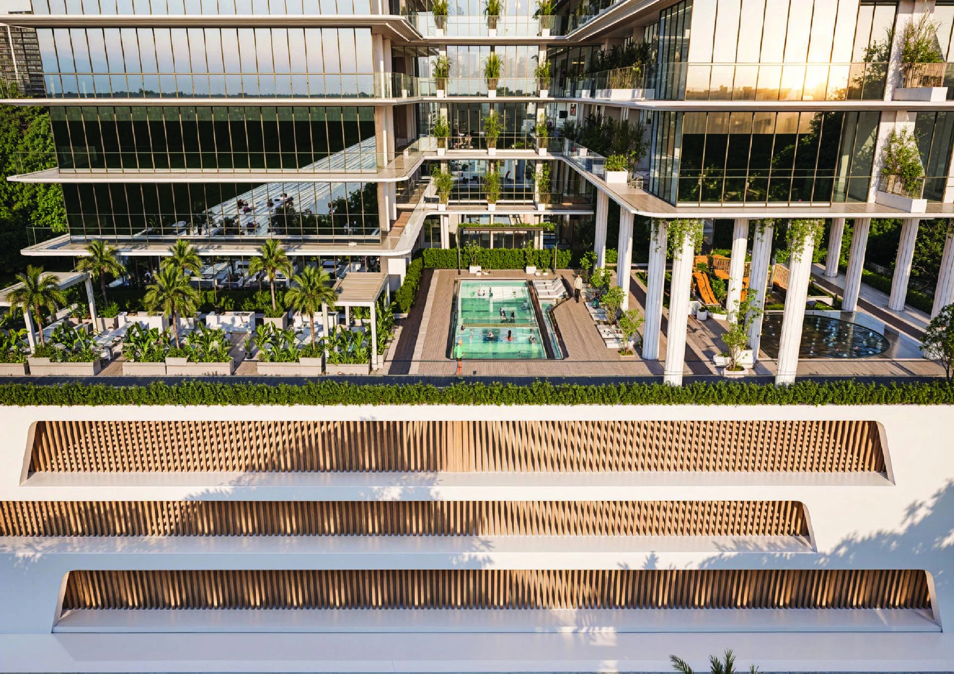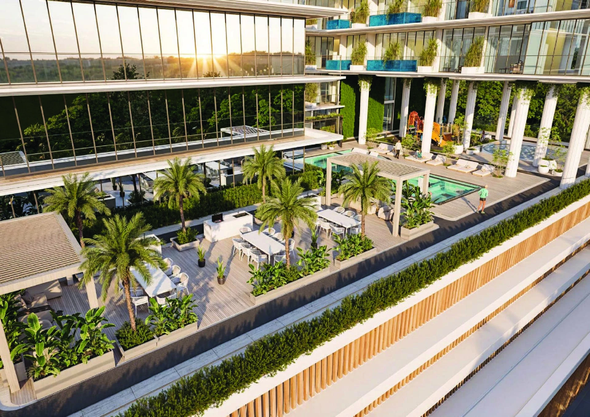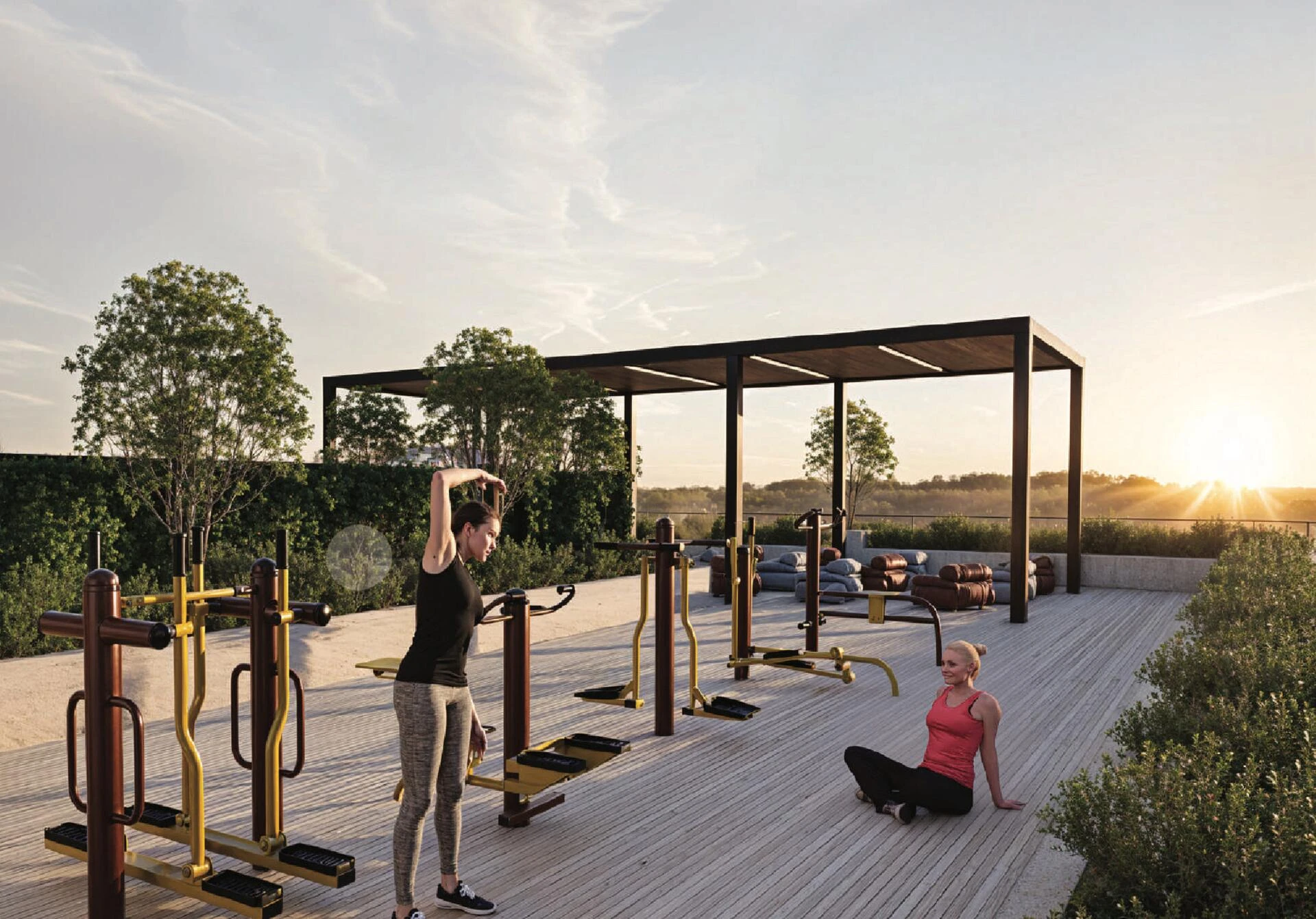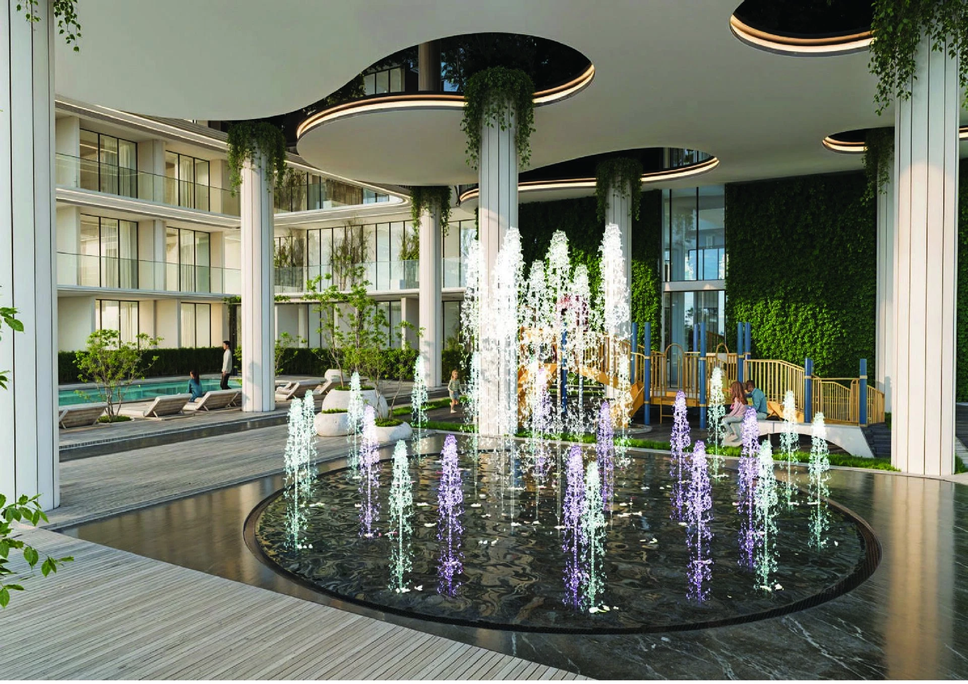 Obyvatelia si užívajú starostlivo vybranú sadu vybavenia, vrátane moderných vnútorných a vonkajších fitness centier, luxusného wellness klubu so saunou, parným kúpeľom a jacuzzi, ako aj bežeckej dráhy a detského ihriska. Na voľný čas a spoločenské aktivity je k dispozícii otvorené kino, biliardová miestnosť, grilovacie oblasti, krásne zelené krajiny a pozorné služby concierge a valet.