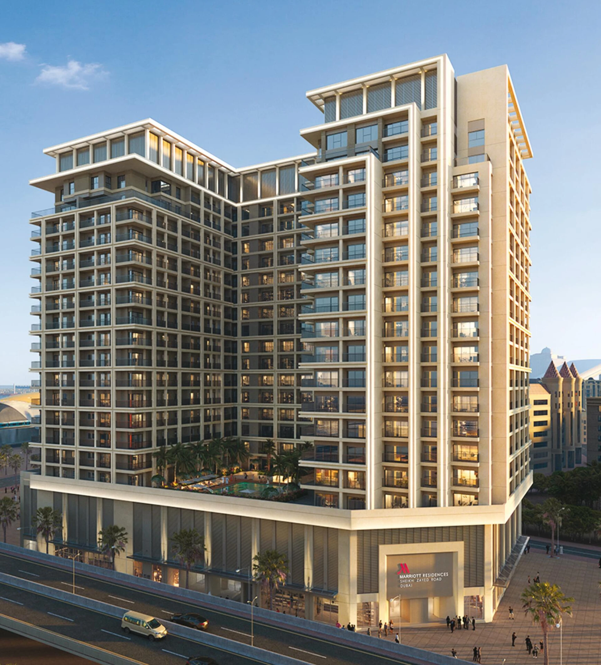 Marriott Residences Sheikh Zayed Road redefinuje luxusné bývanie v Dubaji, spájajúc renomovanú excelentnosť značky Marriott s závideniahodnou adresou na najprestížnejšej triede mesta. Perfektne umiestnené pre živý mestský život aj pre pokojnú súkromnosť, tieto rezidencie vás umiestnia len pár krokov od svetoznámych atrakcií, ako sú Burj Khalifa, Dubai Mall a Mall of the Emirates—s metrom InsuranceMarket len trojminútovou chôdzou pre bezproblémovú dostupnosť. Každá rezidencia je odborné vypracovaná pre náročné chute, ponúkajúca dvojizbové, trojizbové a duplexné usporiadania s otvorenými priestormi, modernými kuchyňami a priestrannými obývacími priestormi. Prémiové materiály—ako parketové drevené podlahy a kamenné povrchy—sa kombinujú s upokojujúcimi zemskými paletami, zatiaľ čo okná od podlahy po strop rámujú nezabudnuteľné výhľady na Sheikh Zayed Road a trblietavú dubajskú panorámu, vrátane ikonických výhľadov na Burj Khalifa. Obyvatelia majú prístup k súboru päťhviezdičkových zariadení vrátane moderného fitness centra, osviežujúceho bazéna a podpisového celodenného stravovania. Prispôsobené služby, ako sú súkromní kuchári a úklidové služby v rezidencii, zabezpečujú, že každodenný život je bez námahy, exkluzívny a definovaný pohodlím. Dokončením zážitku je bezplatné členstvo Marriott Bonvoy Elite, ktoré odomyká globálne privilégiá a jedinečné okamihy. V Marriott Residences Sheikh Zayed Road sa každý deň cíti výnimočne—ponúkajúci kurátorovaný životný štýl, kde sa svetová pohostinnosť stretáva s energiou centra Dubaja.