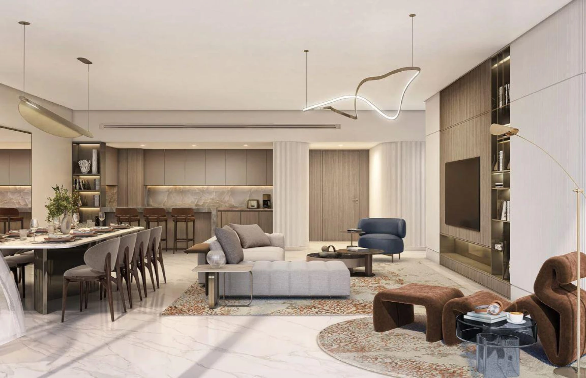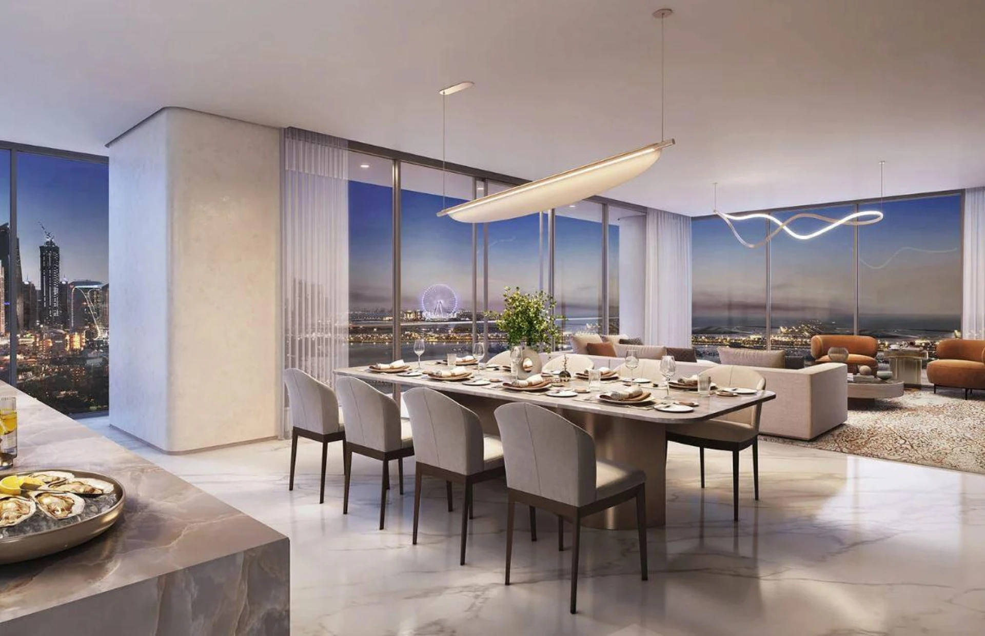Obyvatelia si užijú privilegovanú adresu na malebnej promenáde, obklopenej päťhviezdičkovými hotelmi ako The Residence & Spa, One&Only Royal Mirage a Palm View Hotel. Reštaurácie svetovej úrovne, pôvabné butiky a ohromujúce výhľady vytvárajú destináciu, kde sa každý deň cíti ako dovolenka, spájajúcu mestskú živosť s pokojom na pláži.
