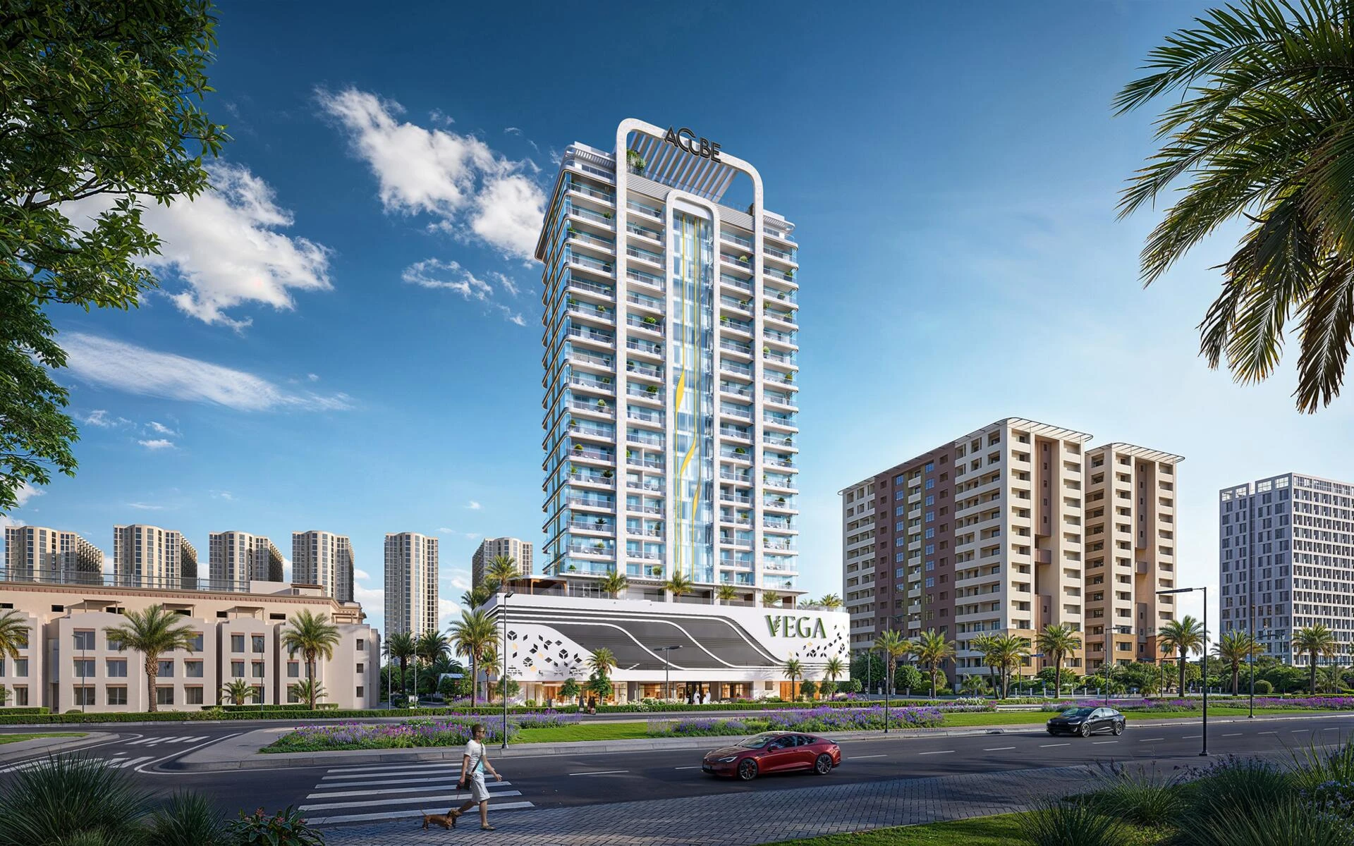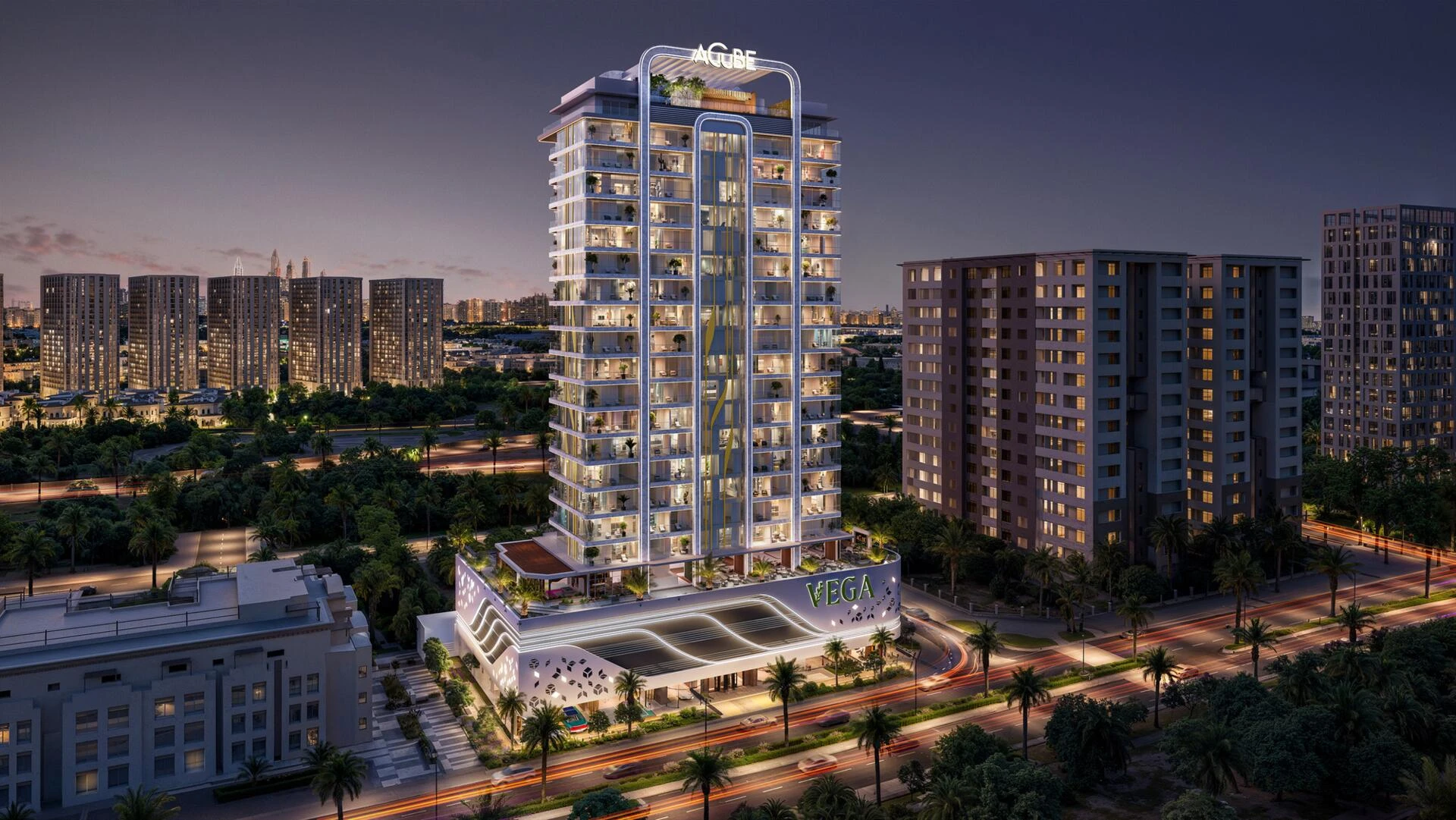 Vega by Acube Developers is redefining urban sophistication in the thriving community of Dubai Sports City. This striking 18-floor residential tower, inspired by the brilliance of its namesake star, seamlessly blends contemporary architecture with the calming essence of nature. Surrounded by thoughtfully landscaped greenery, Vega is a sanctuary where modern city life meets tranquility.