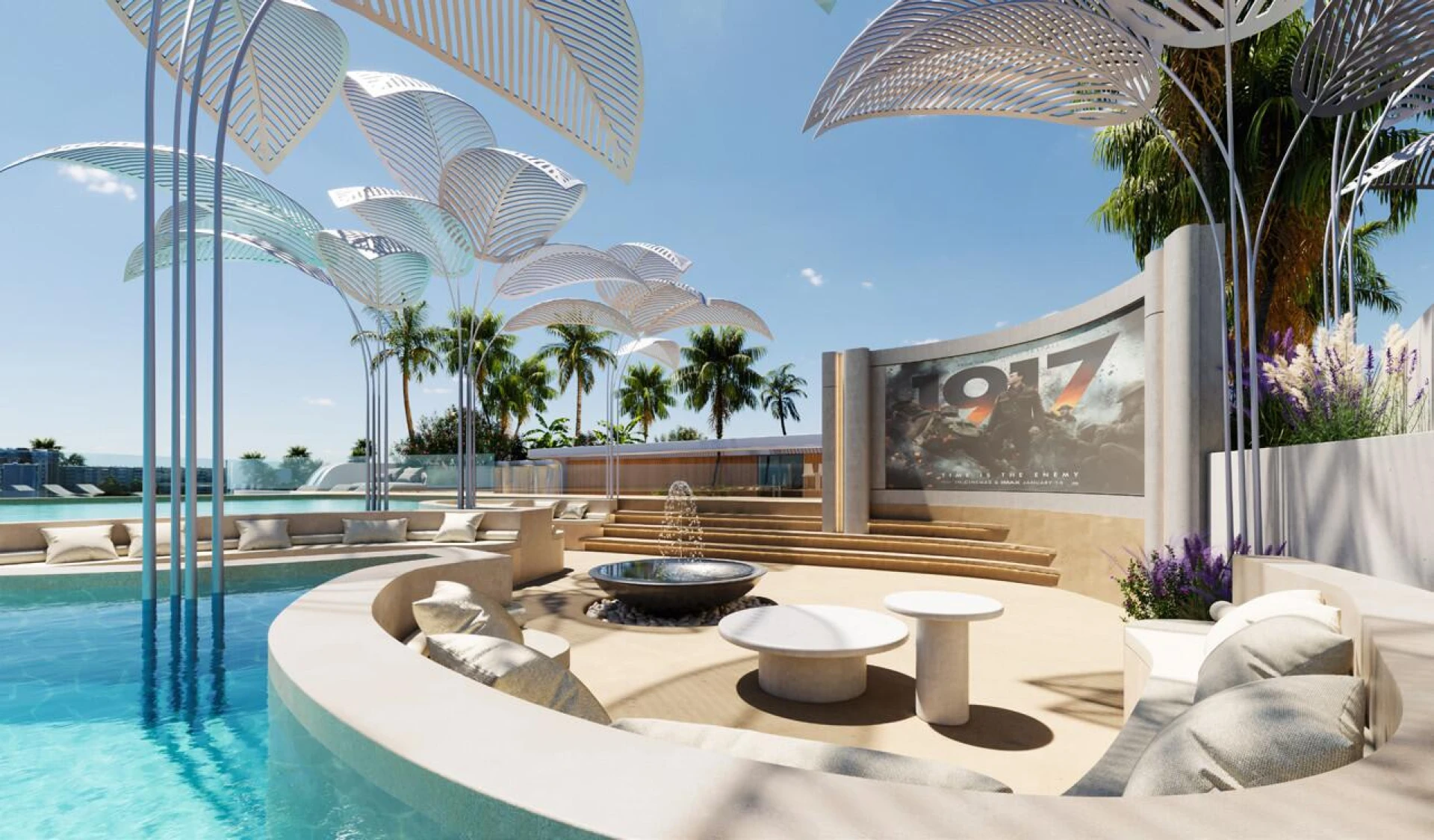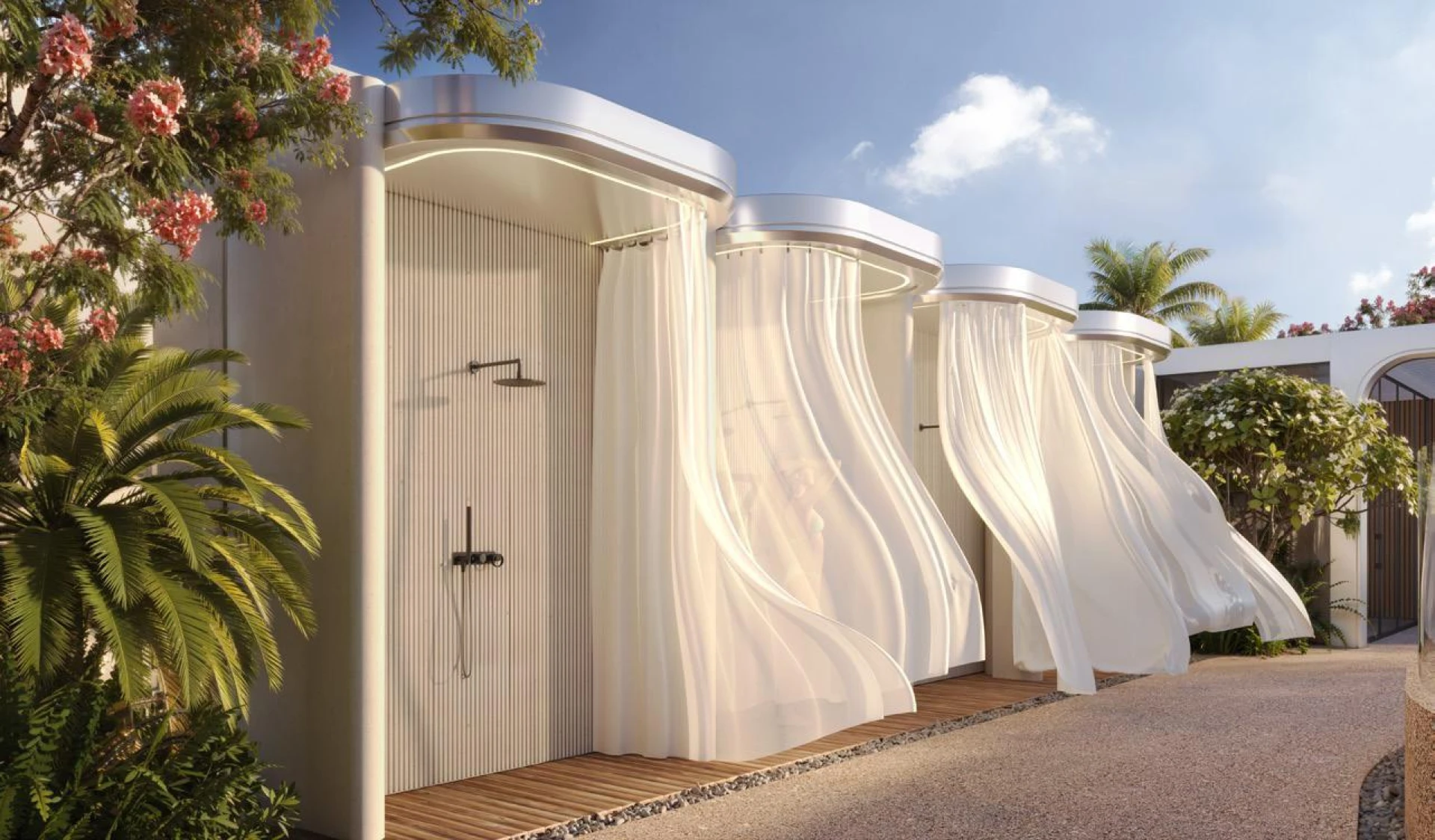 Jedinečná geometrická fasáda budovy čerpá z prírodných tvarov, pričom stĺpové štruktúry a zakrivené balkóny symbolizujú vitalitu a rast. Mäkké, ambientné osvetlenie bez námahy spája interiéry s bujnými vonkajšími krajinami, obklopujúc každý dom v pokojných a sofistikovaných atmosférach.